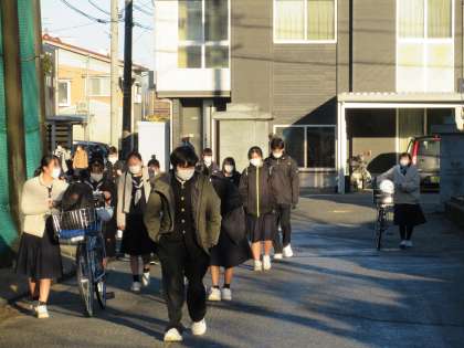 午後からの気温の上昇を見越し、自転車を引いて登校する自転車通学生も見られ危険への予測能力の高まりを感じます。