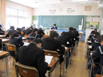 3学年実力テストの様子 その1 公開日 2023/01/20 更新日 2023/01/20 3学年 1月20日(金) 3学年は、5教科の実力テストがありました。 理科のテストを受けている様子です。 上:3−1 中:3−2 下:3−3
