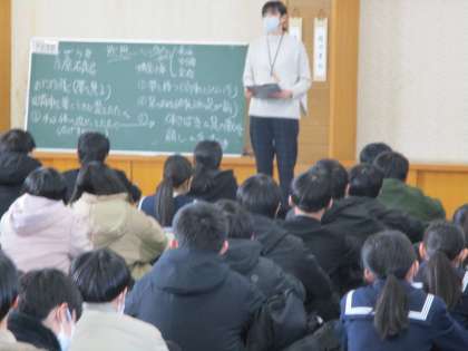 2月1日(水) 5限 明日は私立の一般入試です。最終確認をして、激励会を行いました。