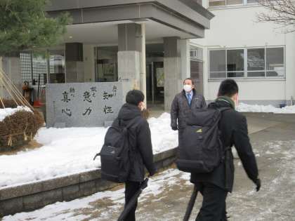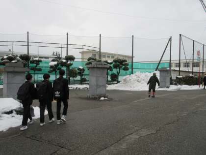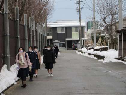私立高校の一般入試を終えた3年生が、内履きを手に持って登校していました。