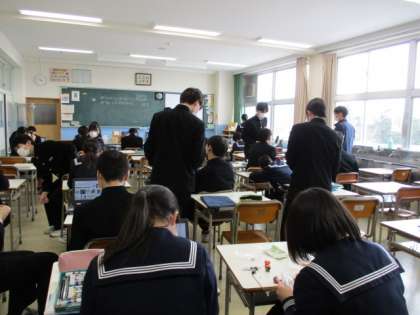 2月3日(金) 3学年の授業の様子です。 上:3−1理科 中:3−2美術 下:3−3数学