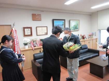 生徒代表が、お礼の言葉を伝え、花束を贈呈しました。