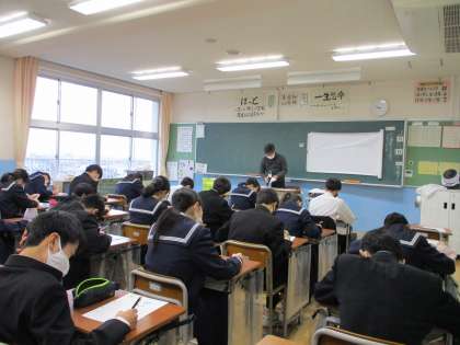 1学年授業の様子1 公開日 2023/02/13 更新日 2023/02/13 1学年 2月13日(月)1限 今日も元気に授業に取り組んでいます。本日からテスト期間で、部活動はありません。今の学年を締めくくる最後のテスト、限りある時間を有効に使い、自分の目標を達成できるように勉学に励んでほしいと思います。 上:1−1 英語 中:1−2 社会 下:1−3 理科