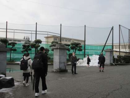 久しぶりに木々に白いデコレーションがされていました。寒さが戻ってしまい、手袋やネックウォーマー等の寒さ対策をして登校する生徒たちが見受けられました。