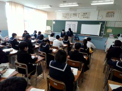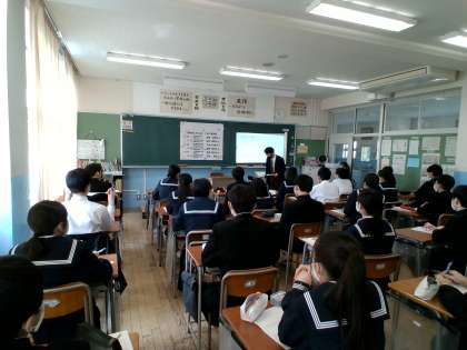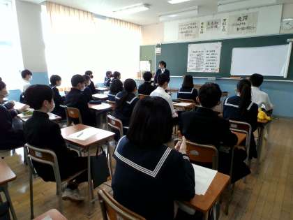 3月9日(木) 高校生に学ぶ会1 公開日 2023/03/09 更新日 2023/03/09 2学年 卒業生が来校して、2年生のために「中学生の頃に頑張ったこと」や「進路選択をする上で大切にしていたこと」、「高校の魅力」などのお話をしていただきました。 とても真剣に話を聞き、自分の今後に生かそうとしている様子が見られました。