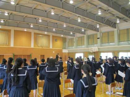 3月10日(金)5限 卒業式に向けて歌練習を頑張っています。