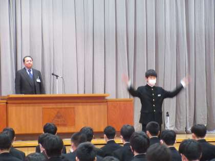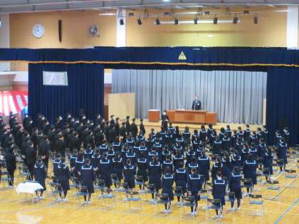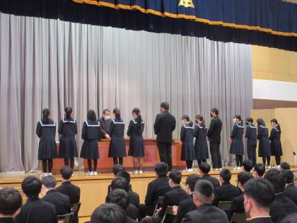 3月14日(火) 校長先生卒業式 1 公開日 2023/03/14 更新日 2023/03/14 3学年 3月14日(火) 校長先生卒業式 1 1限目に、3年生が同じく今年で新庄中学校を後にする校長先生の卒業式を企画してくれました。 卒業証書の授与、色紙の贈呈等を行いました。 そして校長先生が大好きな「群青」を新庄バージョンにして合唱し、プレゼントしました。 校長先生からは、答辞として、3年生へのメッセージと、温かな集会を企画してくれたことへの感謝が伝えられました。