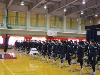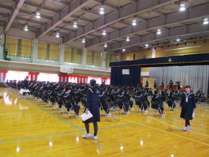 卒業式予行練習 公開日 2023/03/14 更新日 2023/03/14 そ の 他 3月14日(火) 本日、卒業式の予行練習でした。1、2年生が3年生の姿を見ることができるのは今日で最後です。全校で3年生の雄姿を見届けました。