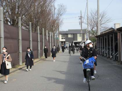 3月16日(木) 朝の登校風景 公開日 2023/03/16 更新日 2023/03/16 そ の 他 3月16日(木) 朝の登校風景です。 3年生が卒業し、今日からは2つの学年のみの登校となります。 2年生は最上級生として、1年生は初めての中学校の先輩としての自覚や準備の期間が始まりますね。 今年度の登校も今日をのぞけば後5日となります。 1、2年生にとっても締めくくりの季節が来ましたね。 さあ、「笑って おはよう!」で今日もスタートです!!