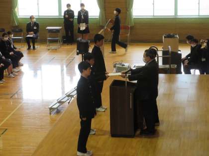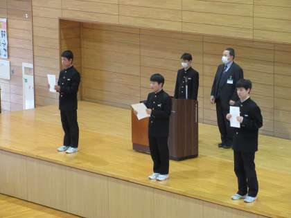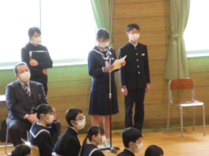 先日行われた令和5年度生徒会役員選挙を受け、選挙管理委員会の進行で、生徒会役員認証式・任命式が行われました。