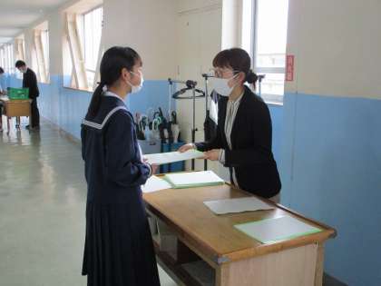 担任から一人一人通知表と修了証を受け取りました。