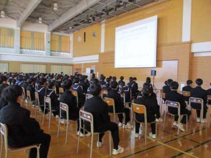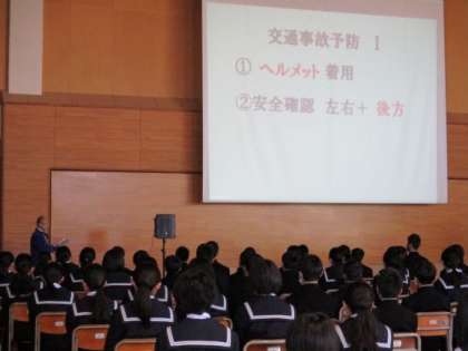 4月10日(月)交通安全教室 公開日 2023/04/11 更新日 2023/04/11 1学年 本日の6限に、1年生を対象とした交通安全教室がありました。 生徒指導主事から自転車を乗る時の注意事項等の話を、みんな静かに聞いていました。 後半には、交通安全に関するビデオも見ました。 1年間、事故を起こさないように、注意して自転車に乗りたいですね。 放課後には、自転車点検もありました。 明日は、今日伝えられた自転車小屋に停めましょう。