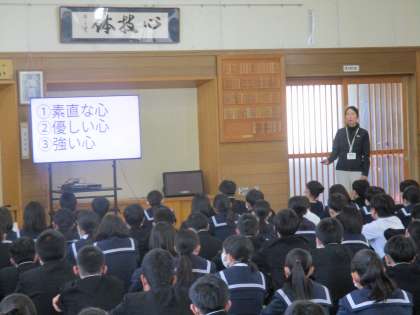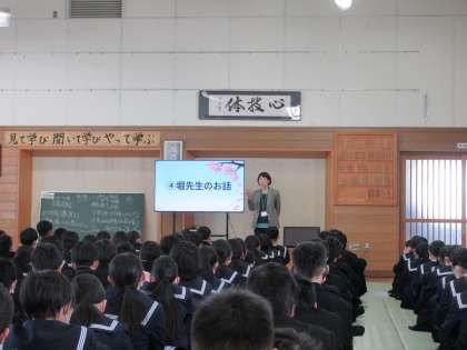 4月10日(月)5限 2学年 学年集会 公開日 2023/04/11 更新日 2023/04/11 2学年 2学年になって初めての学年集会が行われ、学年の先生が紹介されました。 また、先生からは学習面、生活面についてお話があり、進路や今後の過ごし方について考える機会となりました。 最後に学年主任より、「熱い心」「温かい心」「安心安全な場所」という意味の「HOT」な学年にしましょうとお話がありました。