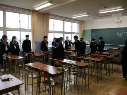 学級代表や各委員会、自分の係の仕事はもちろん、代表生徒の呼びかけに、学級全員が協力できる学年になればいいですね。