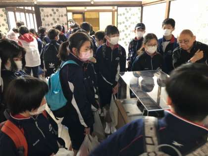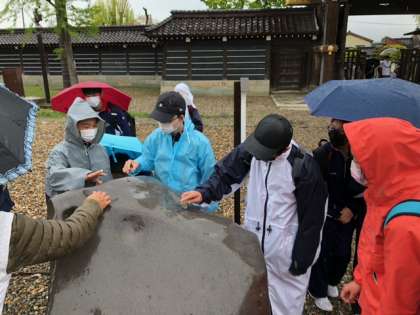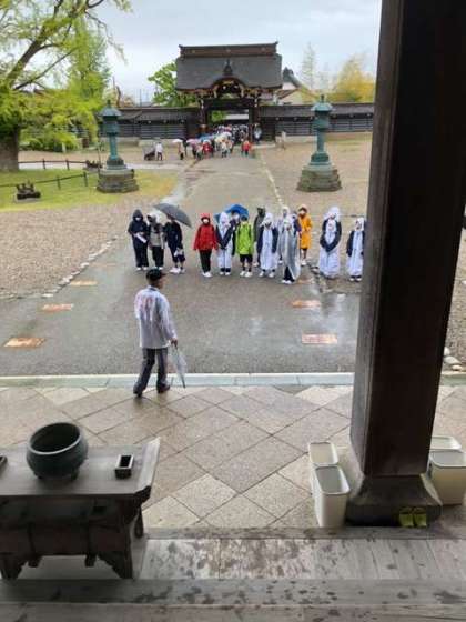 4月26日(水)1年 宿泊学習 公開日 2023/04/26 更新日 2023/04/26 1学年 5組です。 勝興寺を見学し終えました。 あいにくの雨ですが みんな真剣に話を聞いています。 今から万葉歴史館に行ってきます!