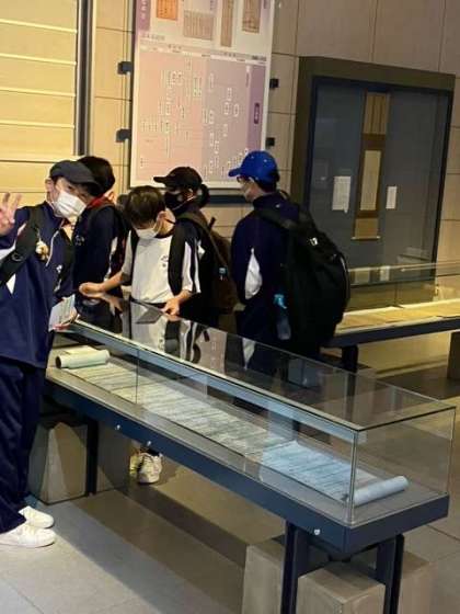 1組です。万葉歴史館にいます。 万葉の世界観に包まれています。