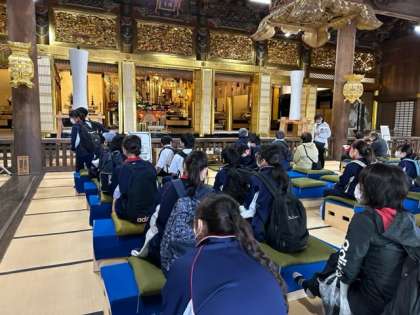 4月26日(水)1年 宿泊学習 公開日 2023/04/26 更新日 2023/04/26 1学年 3組です。高岡市万葉歴史館と勝興寺に行きました。 万葉集の歴史や国宝について学びました。 楽しく見学しています。