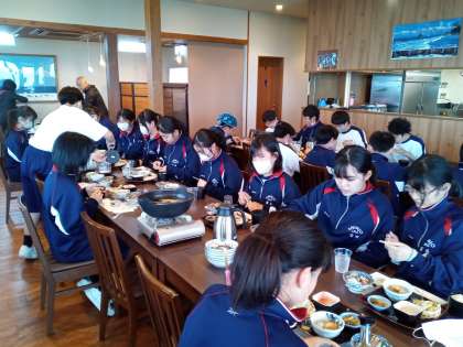 2・3組です。 ひみ番屋街で昼食をとっています。 氷見の魚は美味しいね!