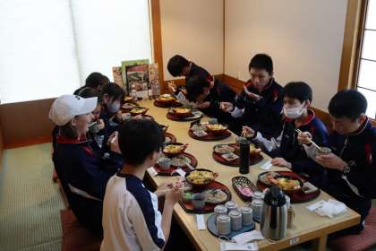 4月26日(水)1年 宿泊学習 公開日 2023/04/26 更新日 2023/04/26 1学年 1組です。 ボリューミーな食事でずいぶんお腹も満たされました。 給食とはまた違った雰囲気の中で、お互い顔を見合わせて思わず笑みがこぼれます。 これで、高岡を後にして、能登青少年の家に向かいます。