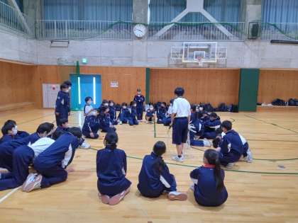 午後の活動後半はクラス対抗大縄跳び! 息のあったジャンプに取り組んでいます。