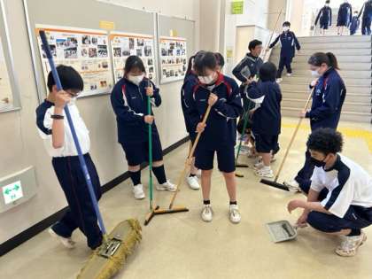 4月27日(木)1年 宿泊学習 公開日 2023/04/27 更新日 2023/04/27 1学年 オリエンテーリングで汚れた靴で所内に土が入ってしまったのを気付いてくれた生徒たちが、自主的に使用した講堂等を自主的に掃除していました。 気付く力、素敵です!