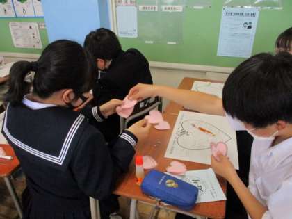 また、友達に渡すときに、「○○してくれて、ありがとう」と感謝の言葉とともに渡す姿や、お互いに笑顔が見られて、どの学級もあたたかい雰囲気でした。