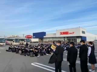 出発式の様子です。 生徒代表から 「いってきます」の元気な挨拶がありました!