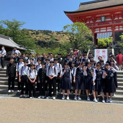 昼食後、清水寺で写真撮影しました。これから元気に班別学習スタートです。