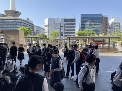 京都駅に続々と集合しています。元気な笑顔で、安心しました。