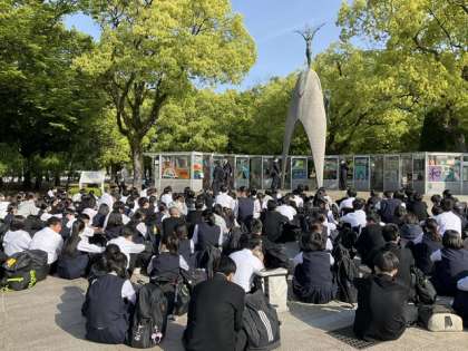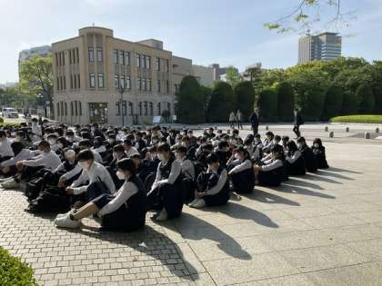 5月10日(水) 3年 修学旅行 公開日 2023/05/10 更新日 2023/05/10 3学年 おはようございます。6組です。原爆の子の像前に到着しました。セレモニーを行なった後、碑巡りと資料館に行きます。ぐっすり寝たのか、元気いっぱいです!