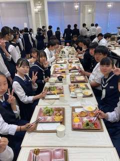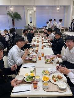 後半朝食組 1組3組6組です。美味しそうに、自分で選んだ朝ごはんを食べています。