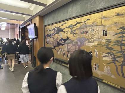 場内の展示や、場内からの景色に見入っています。