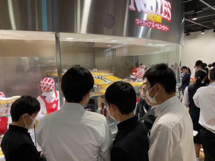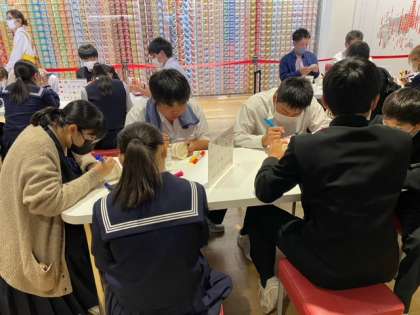 1組です。オリジナルのカップヌードルを手にしてうれしそうです。また、カップヌードルの歴史について楽しく学べたようです。