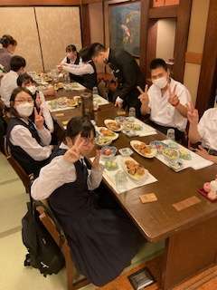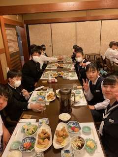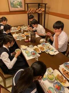1組です。 昼食を取ってます。大きい唐揚げがあります。