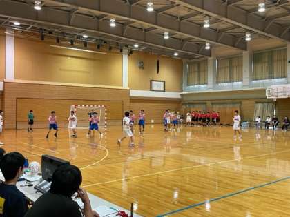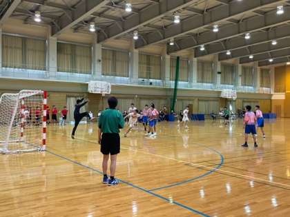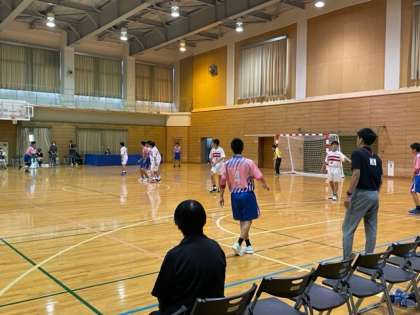 男子ハンドボール部です。新庄中の体育館で試合をしています。