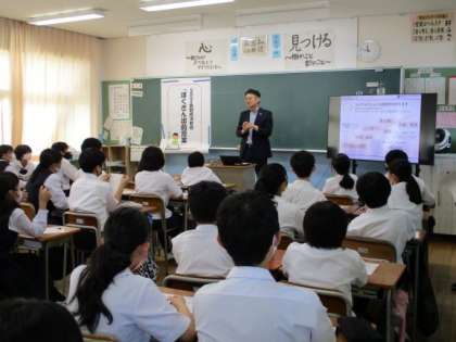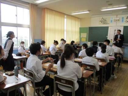 1学年では本日、北陸銀行の職員の方々を講師として招いて、3〜5組で「SDGs金融経済教育『ほくぎん出前授業』」を行いました。