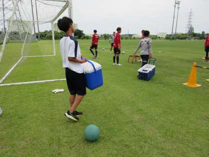 カターレ富山です。今日は午前中に選手の練習のサポートをしていました。時折、選手と一緒にトレーニングに混ぜてもらい体を鍛えました。ハードな練習をしているカターレ富山の選手たちに驚嘆です。