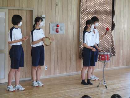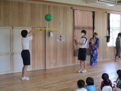 「七夕の集い」が開催され、園児と共に楽しみました。最後には、生徒がそれぞれの特技を園児の前で披露し緊張しながらも堂々と見せることができました。