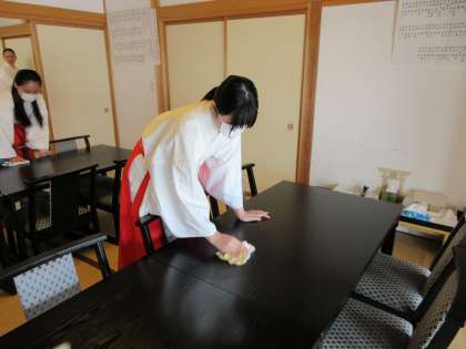 近所の方々のお茶会に参加させていただきました。帰られた後、丁寧に机を拭いて片付けをしていました。