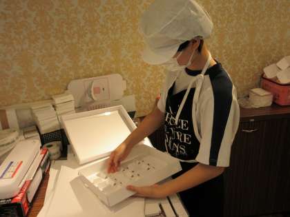 お菓子を詰める箱を丁寧に作成していました。パティシエの方と一緒に作業させていただき、お菓子作りの工程を学ぶことが出来ました。