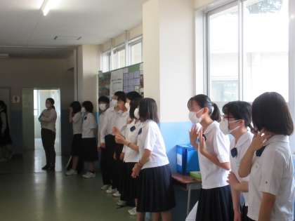 7月10日(月) 登校風景 公開日 2023/07/10 更新日 2023/07/10 そ の 他 蒸し暑い朝となりました。 気温も高くなりますが、湿度が高いので熱中症対策を充分にして登下校をしましょう。 14歳の挑戦が終了し、2年生が学校へ戻ってきて賑やかになりました。 学んだことを今後の学校生活等にもいかして欲しいです。 挨拶運動や朝清掃に頑張っています。