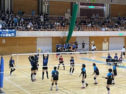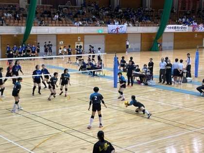 7月15日(土) 富山県中学校総合選手権大会 バレーボール競技 公開日 2023/07/15 更新日 2023/07/15 部活動 女子バレーボール部です。 黒部市総合体育センターで県選の一回戦に臨んでいます。 初戦は、ファンバ富山を、25-9、25-13のセットカウント2-0のストレートで下して2回戦にコマを進めました。 次も頑張ります!
