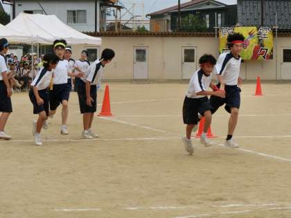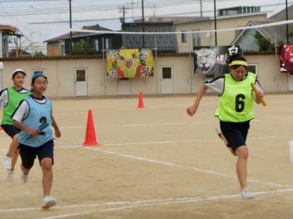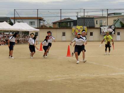 体育大会の花形、リレー競技です。 すばらしい走りが見られました。 盛り上がりも最高潮です。