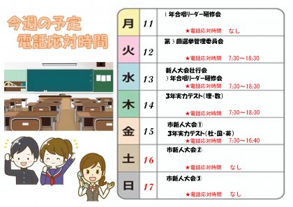 9月11日(月)〜9月17日(日)の予定 公開日 2023/09/14 更新日 2023/09/14 そ の 他 9月11日(月)〜9月17日(日)の予定です。 ※あくまで予定となりますので、変更することもあります。