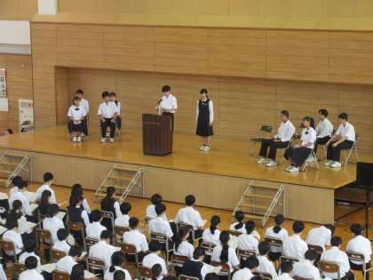9月22日(金) 生徒会選挙 立ち会い演説会 公開日 2023/09/22 更新日 2023/09/22 生徒会 生徒会選挙と立ち会い演説会が行われました。 各候補がしっかりと自分の意見を述べ、次の生徒会で頑張りたいことを伝えていました。