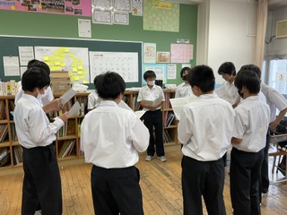 各学級のパートリーダーが中心となり、練習計画を立て、工夫しながら練習していました。音を確認しながら練習している学級が多かったです。練習後は、リーダーが集まり練習を振り返ります。クラスみんなが一つとなり、素晴らしい曲を作り上げられるといいですね。