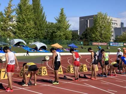 10月7日(土) 県ジュニアオリンピック 公開日 2023/10/08 更新日 2023/10/08 部活動 新庄中学校から県ジュニアオリンピックに出場しています。 2年と1年の男子100mの予選が行われて、午後から行われる決勝に2名とも進出しました。シーズンベストを目指して決勝も良い走りを目指します。