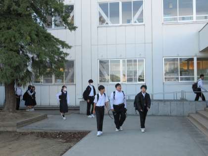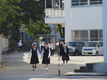 10月13日(金) 登校風景 公開日 2023/10/13 更新日 2023/10/13 そ の 他 本日まで中間評価となっています。 正門前に立っていると、普段より少し早めに登校してくる生徒の様子がみられます。 中間評価が終わると、合唱コンクールに向けて気持ちが高まっていきそうです。