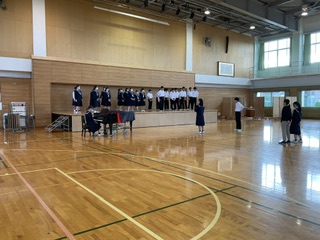 10月13日(金)2学年放課後合唱練習 公開日 2023/10/15 更新日 2023/10/15 2学年 10月13日(金) 2学年では、ほとんどのクラスが全体で合わせながら、繰り返し練習しました。リーダーを中心に相談し合いながら練習を進めています。
