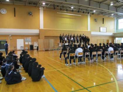 本日、学年リハーサルがありました。初めて他の学級の合唱を聴き、自分の学級の合唱をもう一度見つめ直すいい機会になったようです。学年リハーサル後に各学級で振り返りをしました。